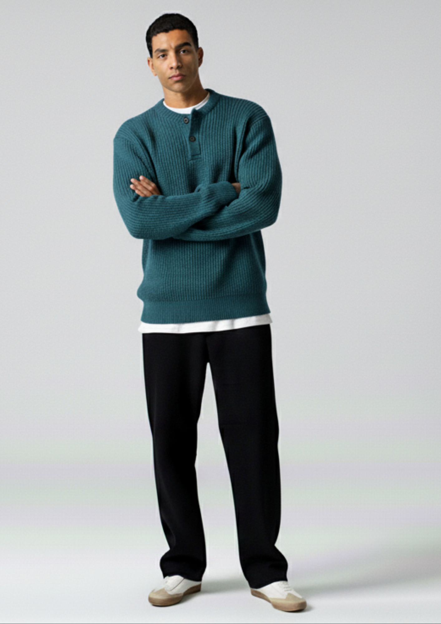 This piece is made from a soft, knitted fabric that delivers warmth without compromising breathability. Its signature features include a refined regular fit that lays naturally on the body, providing a structured yet relaxed silhouette. The classic Henley neckline, complete with a clean button placket, adds a subtle touch of character—making it an effortless choice whether layered or worn on its own. Designed for versatility, this Henley transitions seamlessly from casual outings to elevated essentials.