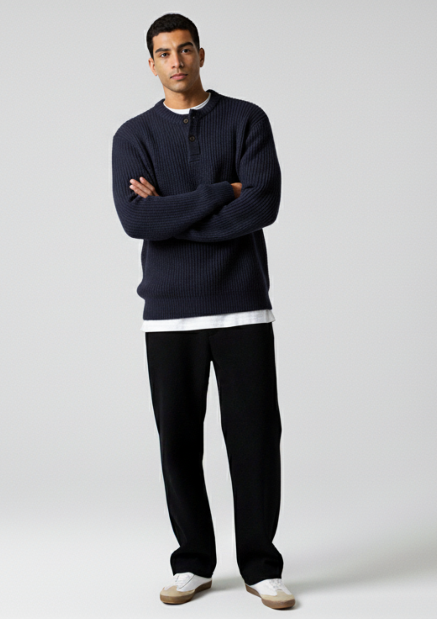 This piece is made from a soft, knitted fabric that delivers warmth without compromising breathability. Its signature features include a refined regular fit that lays naturally on the body, providing a structured yet relaxed silhouette. The classic Henley neckline, complete with a clean button placket, adds a subtle touch of character—making it an effortless choice whether layered or worn on its own. Designed for versatility, this Henley transitions seamlessly from casual outings to elevated essentials.