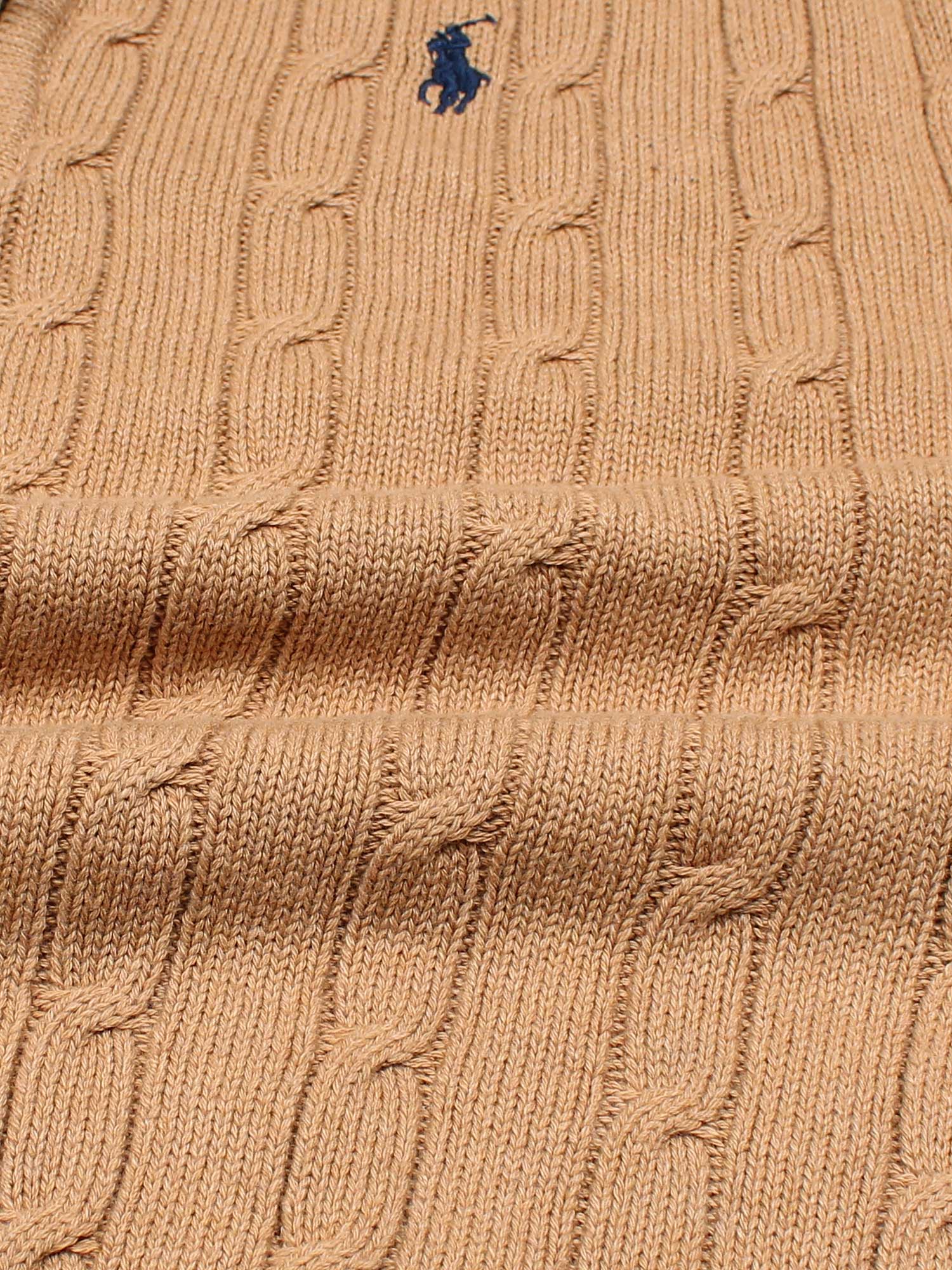 RL Cable-Knit Half Zipper Cotton Sweater (camel brown)